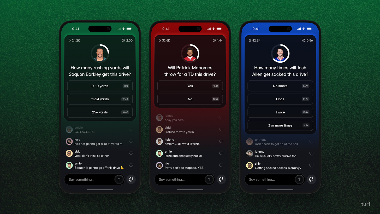 Turf isn’t a betting app. It’s a social layer for how modern fans actually watch: live, together, and fully locked in.
